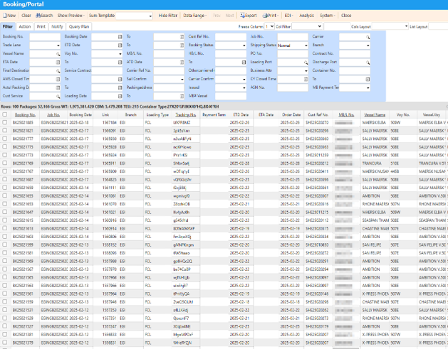 Booking List, Booking Request, B/L Amend, Freight List, Freight Statement
